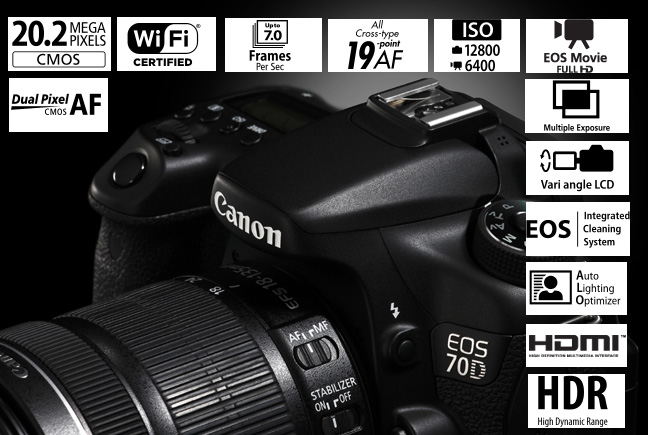 Suoritamme mainos- ja muut valokuvaukset Canonin EOS 70D -digijärjestelmäkameralla.